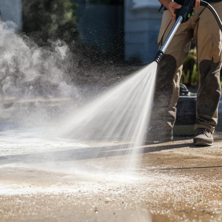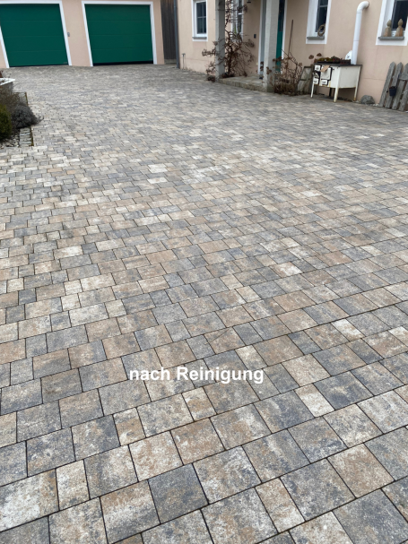 Reinigung von Einfahrten, Terrassen, Mauerwerk, Dachrinnen, Bodenrinnen etc.